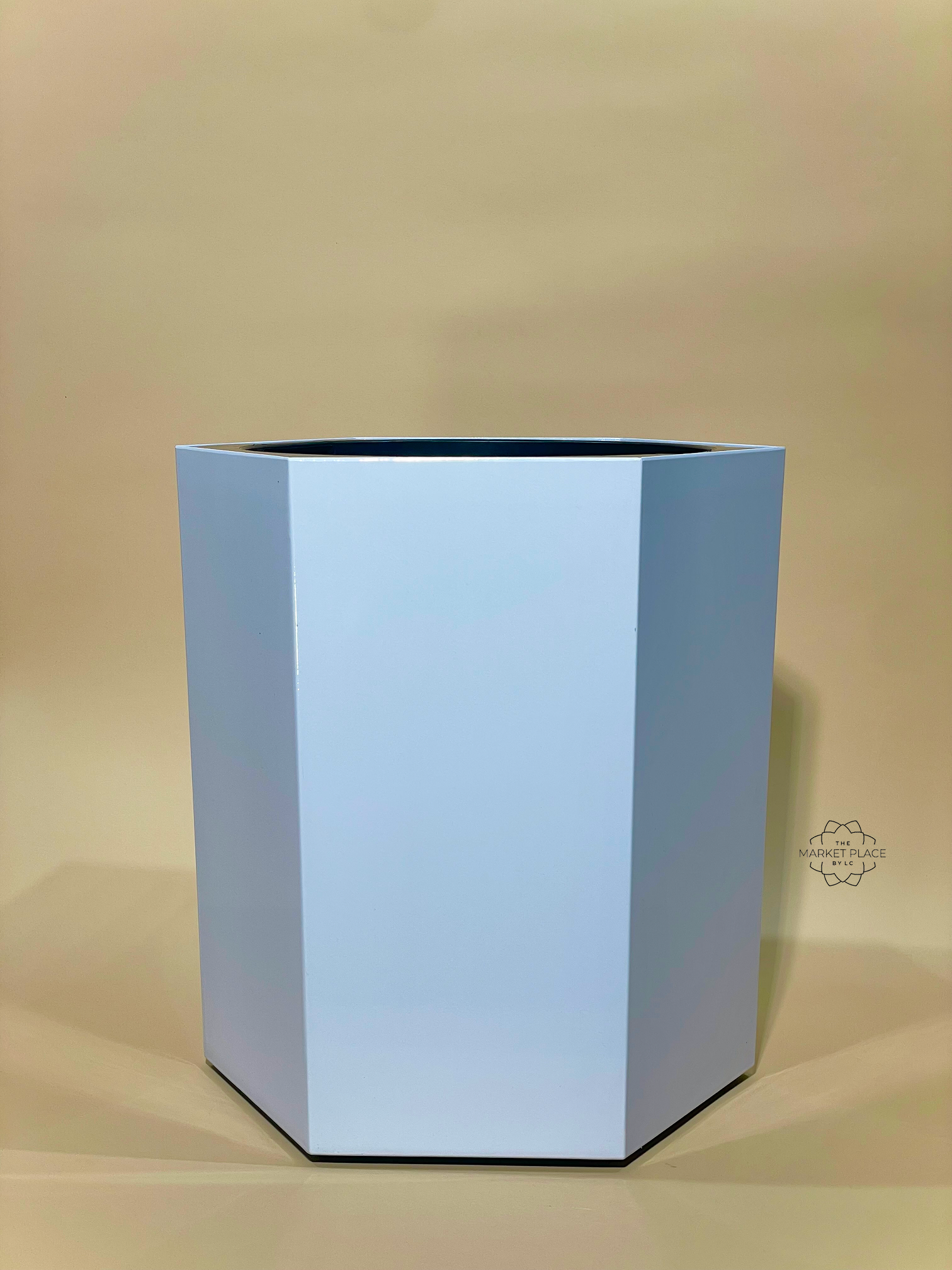 Modern hexagonal planter in crisp white. Dimensions: 40cm x 29cm, perfect for contemporary homes.