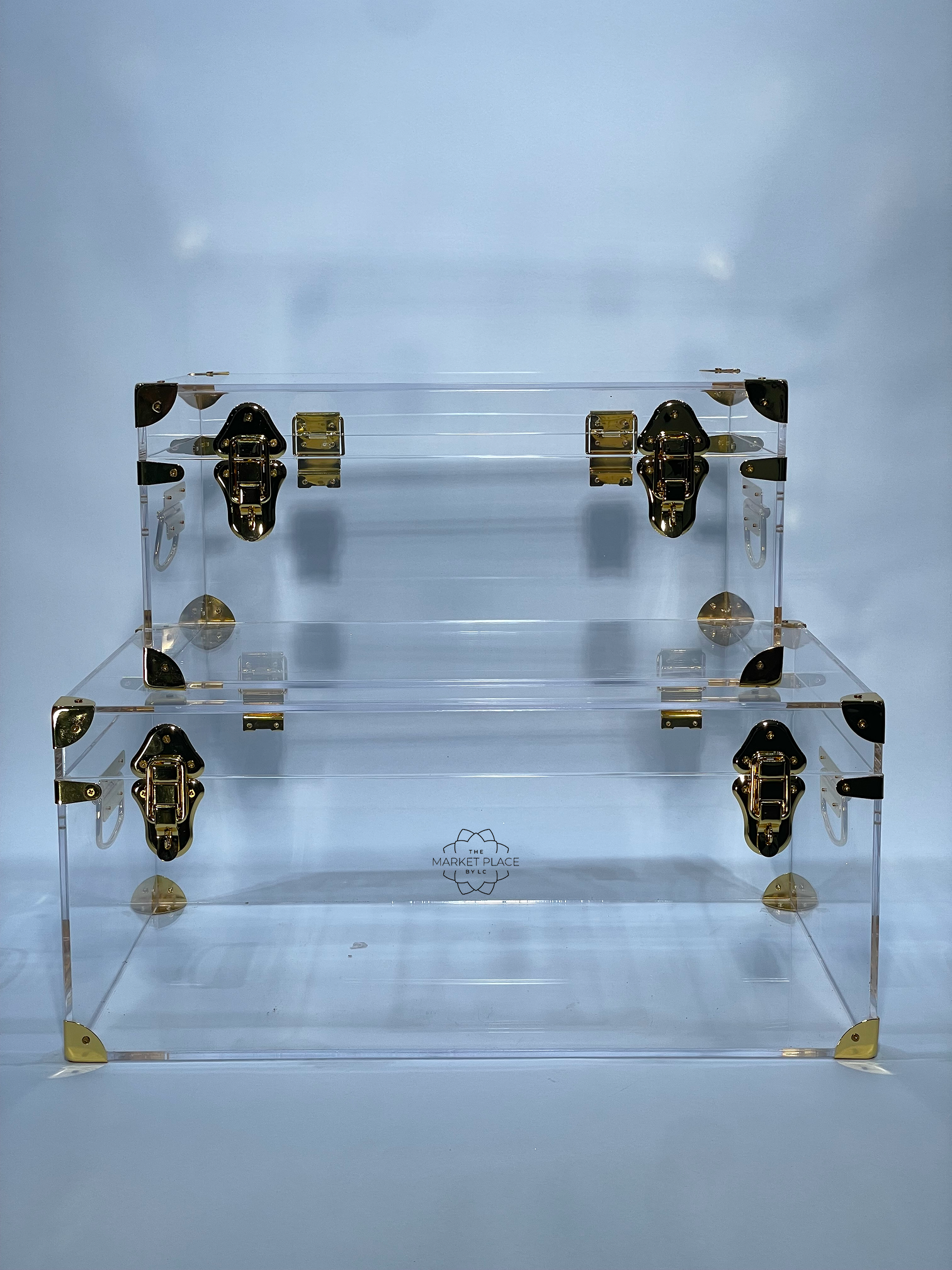 Compact acrylic trunk ideal for contemporary home décor, offering a blend of functionality and minimal style.
