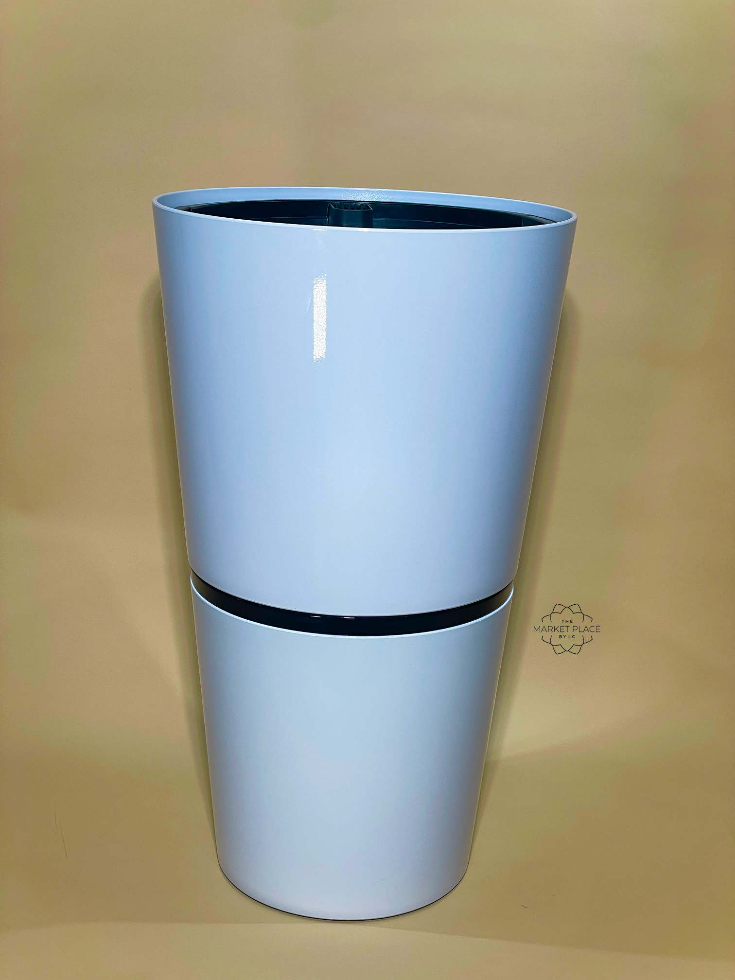 ROUND SURFACED DOUBLE LAYER WATER-ABSORBING PLASTIC PLANTER WHITE
